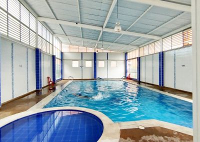 * Piscina con botón de pánico y rescatista